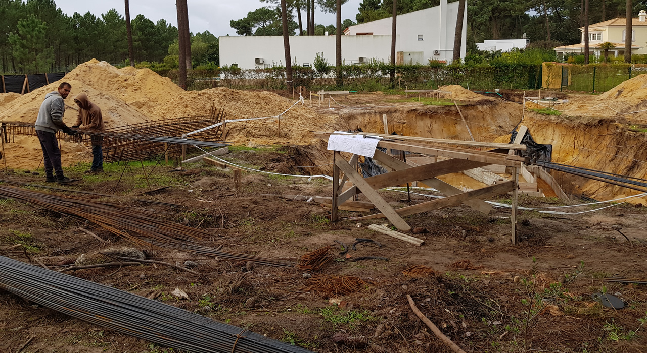 Dit soort dikke 'betonijzerstaven' (heet vast anders) met een doorsnede van ongeveer 2 cm, komen dus in het 'betão'. Je zou denken, dat is sterk genoeg voor een flatgebouw, maar dit is aardbevingsgevoelig gebied dus zijn de eisen aan bouwen nét even anders..