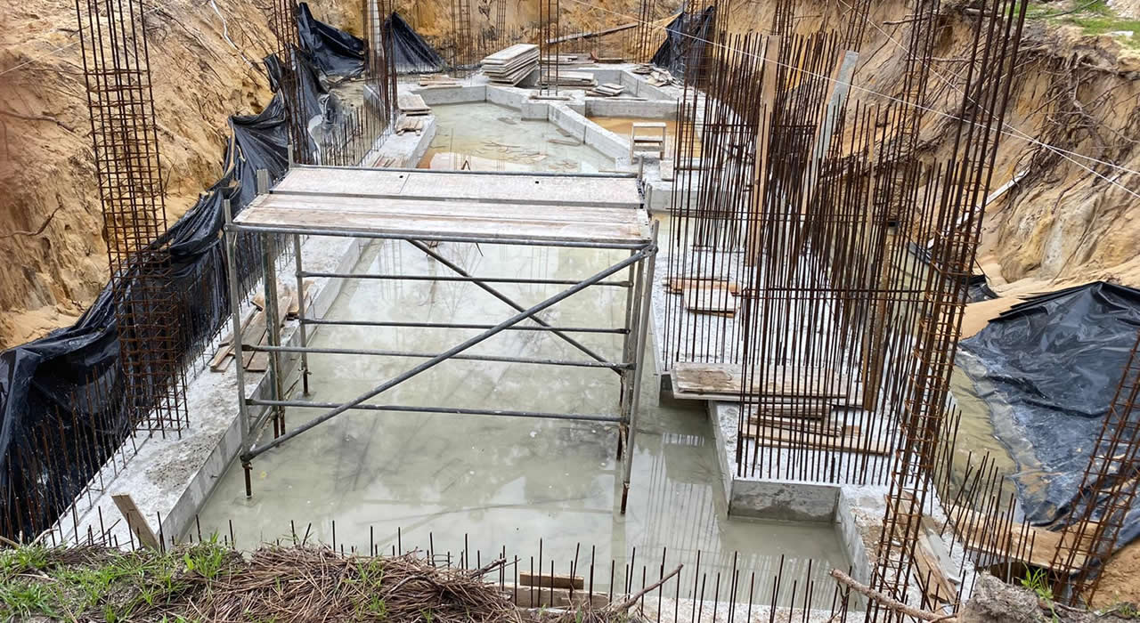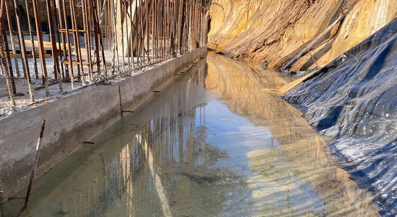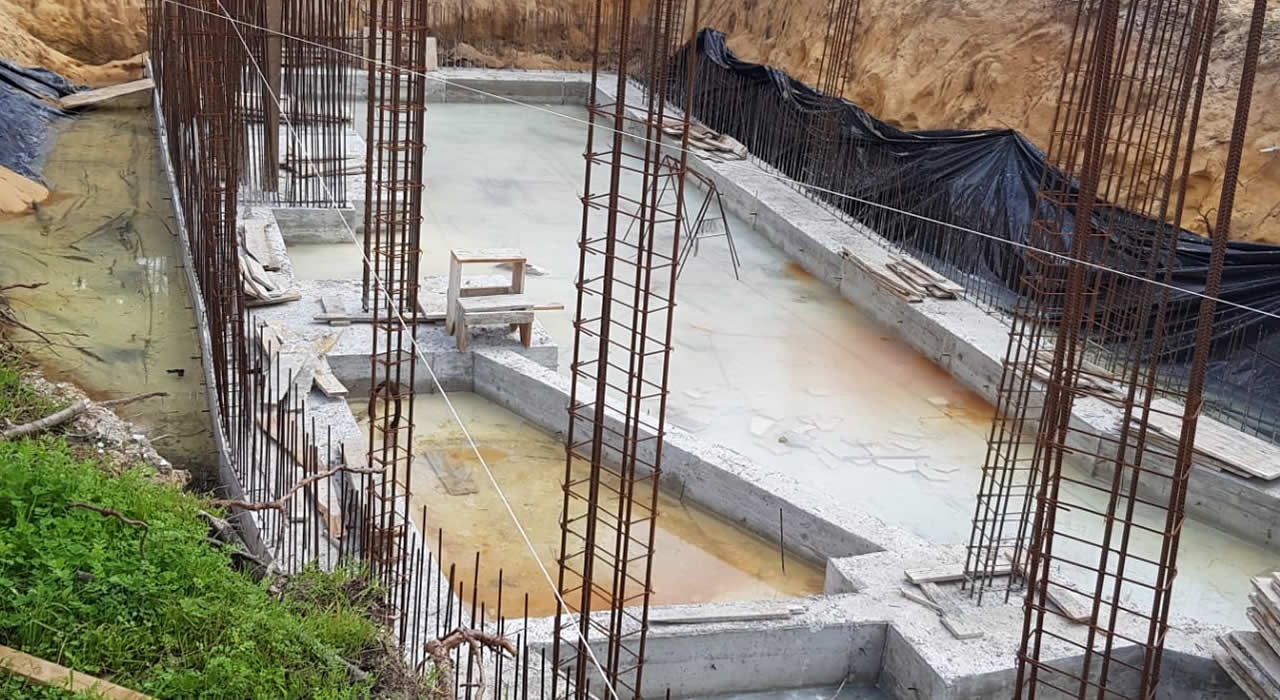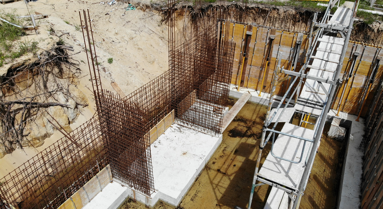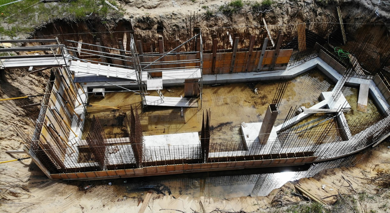 Het jaar 2020 begon voor ons juist goed. De fundering was gestort, en er werd een begin gemaakt met de bekisting rondom het ijzerwerk, het zgn. vormwerk. Het zonnetje scheen, het water leek zich wat terug te trekken, de problemen leken bijna overwonnen. Nu konden we eindelijk de hoogte in! Gewoon stug doorwerken en dan zouden we Kerst in ons nieuwe huis vieren. Dat was nog eens een vooruitzicht!