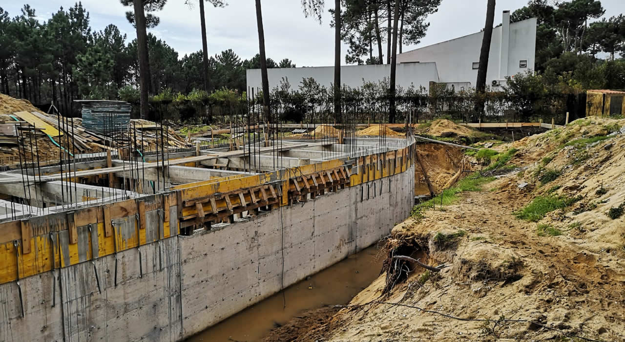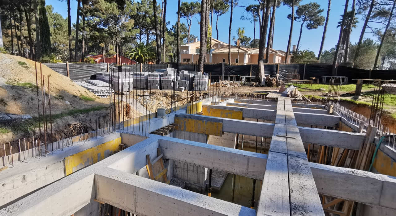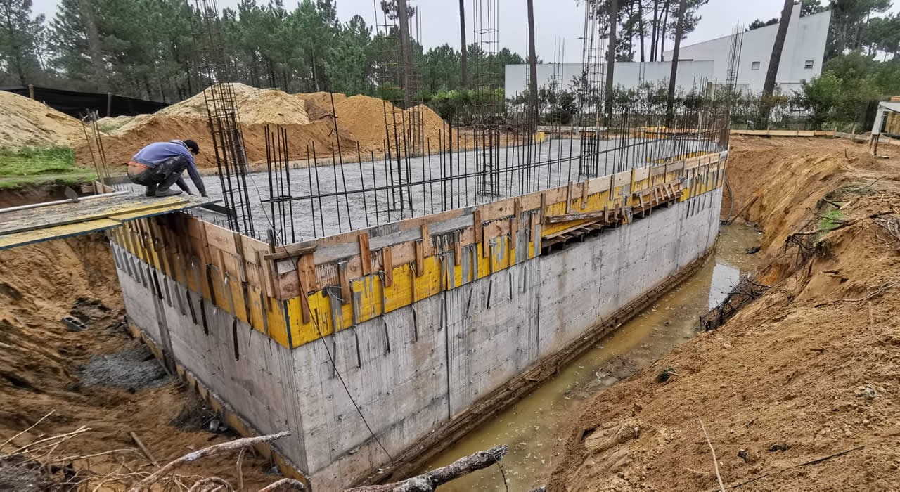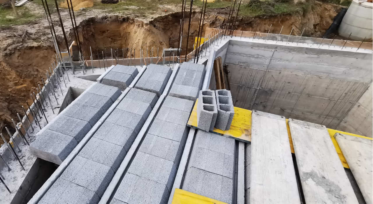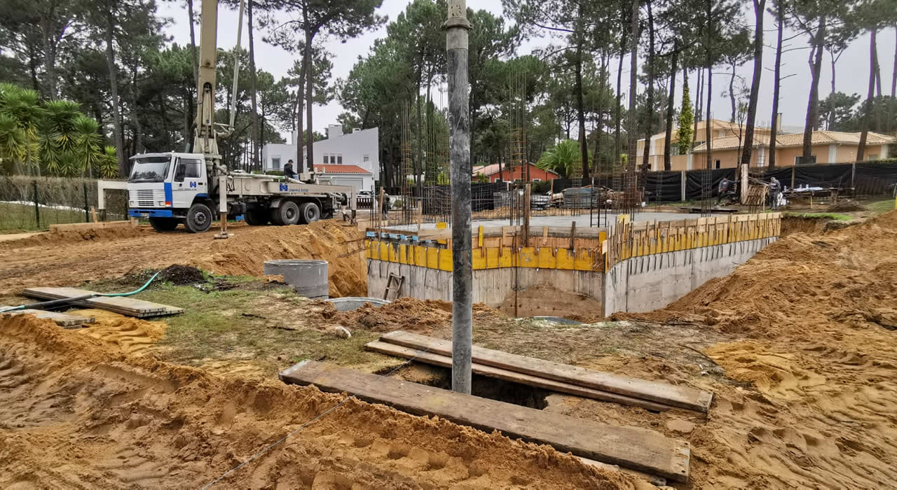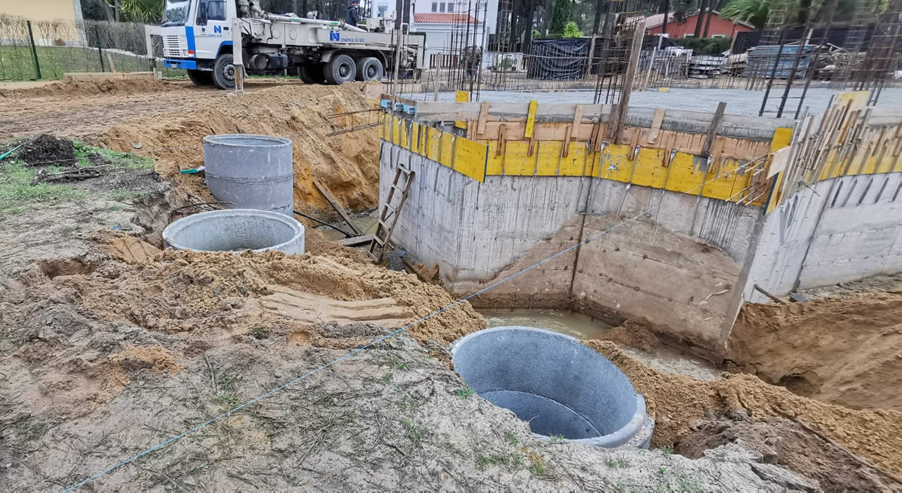 Heien is hier niet zo gebruikelijk, dus de volgende stap: het volstorten van de kolommen met - ja hoor - nóg meer beton.